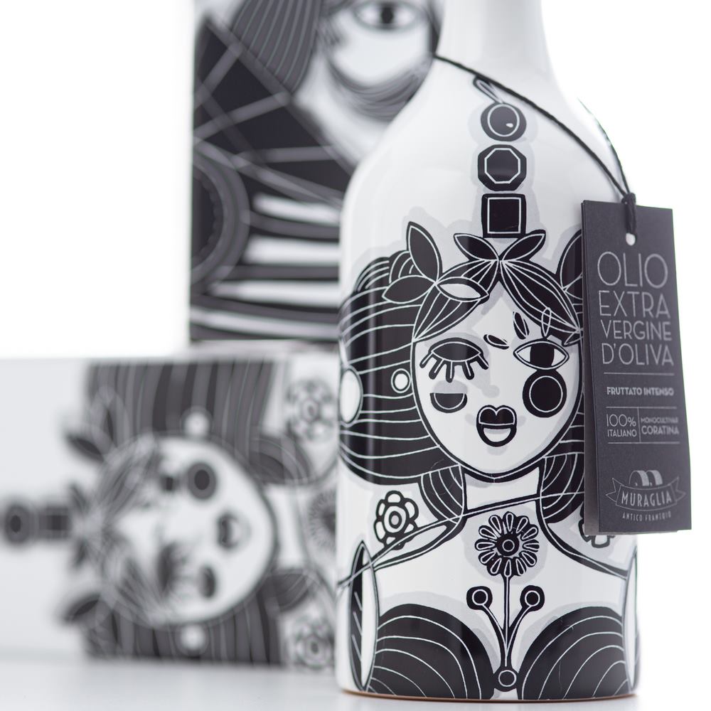 Za týmto jedinečným dizajnovým prevedením olivového extra panenského oleja stojí päť generácií talianskej rodiny Muraglia, ktorá už viac ako 80 rokov lisuje olivy v srdci Apúlie – jednej z najvychýrenejších oblastí pre výrobu vysoko kvalitného extra panenského olivového oleja.